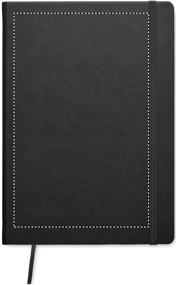 DIN A5 Notizbuch mit Hard Cover aus PU. 100 Blatt (200 Seiten) liniertes Recyclingpapier (80 g/m²). Farblich passendes elastisches Verschlussband und Lesebändchen. Hergestellt in der EU.