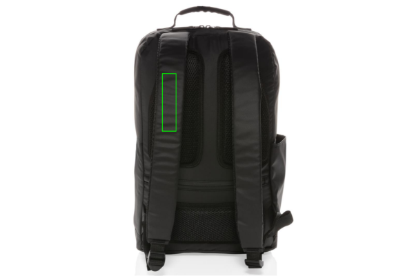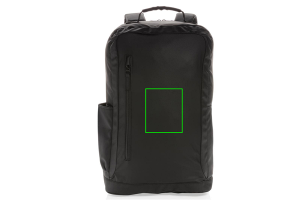 Einfach stylisch ist dieser ganz in schwarz gehaltene Laptop-Rucksack aus PU mit einem großen Hauptfach und einem 15.6" Laptopfach. PVC-frei.