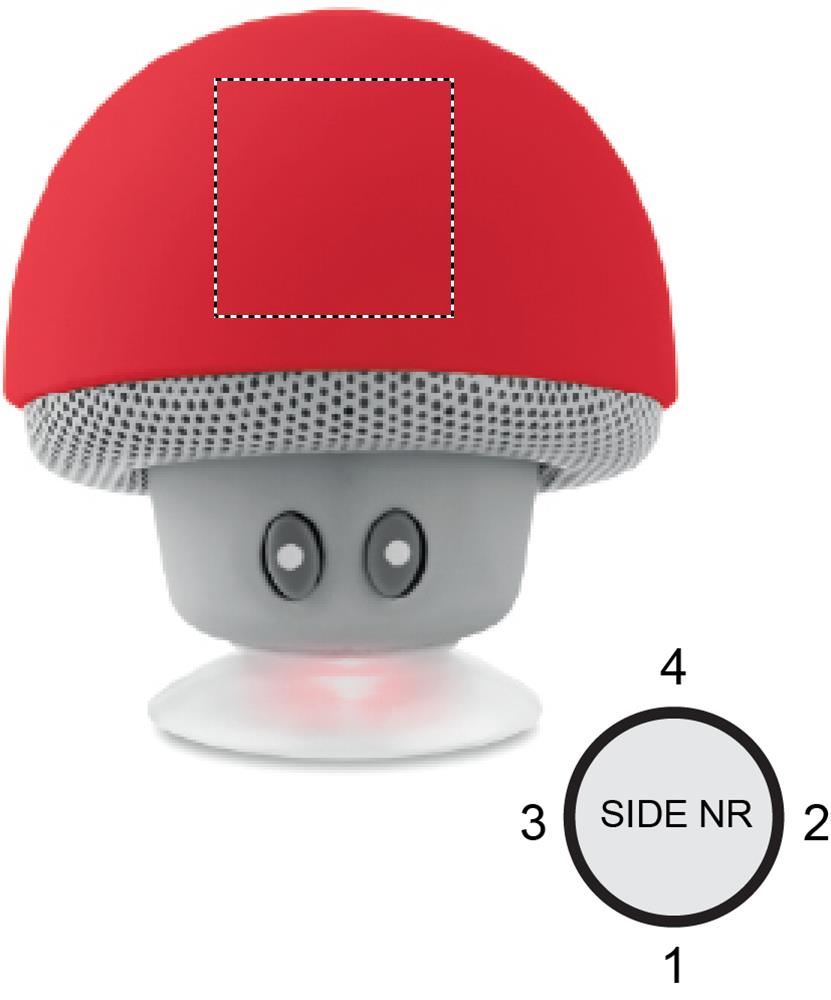 Pilzförmiger 2.1 wireless Lautsprecher/Smartphone Halter aus ABS. Mit Saugnapf. Inkl. wieder aufladbare Lithium 180 mAh. Inkl. USB Ladekabel. Ausgangsleistung: 4 Ohm, 5V und 3W.
