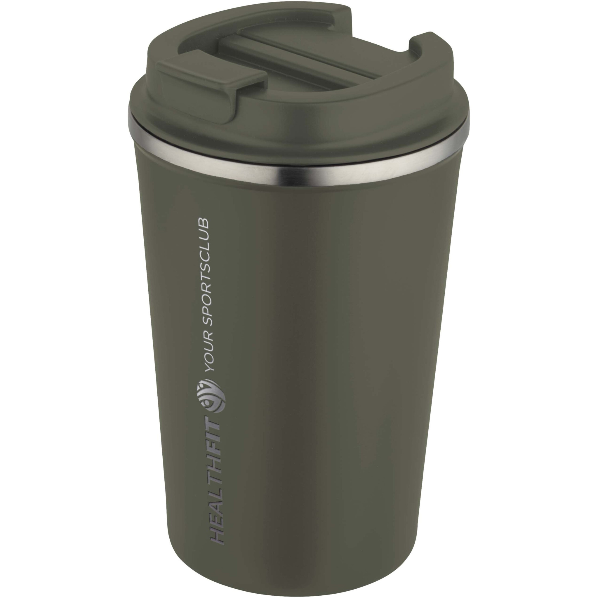 Dieser doppelwandige, vakuumisolierte Kaffeebecher aus Edelstahl wurde für den Einsatz unterwegs entwickelt und hält Getränke lange auf der eingefüllten Temperatur. Der Drehverschluss lässt sich leicht öffnen und schließen, sodass ein bequemes Trinken möglich ist. Die matte Beschichtung sorgt für ein elegantes Finish. Fassungsvermögen: 350 ml.