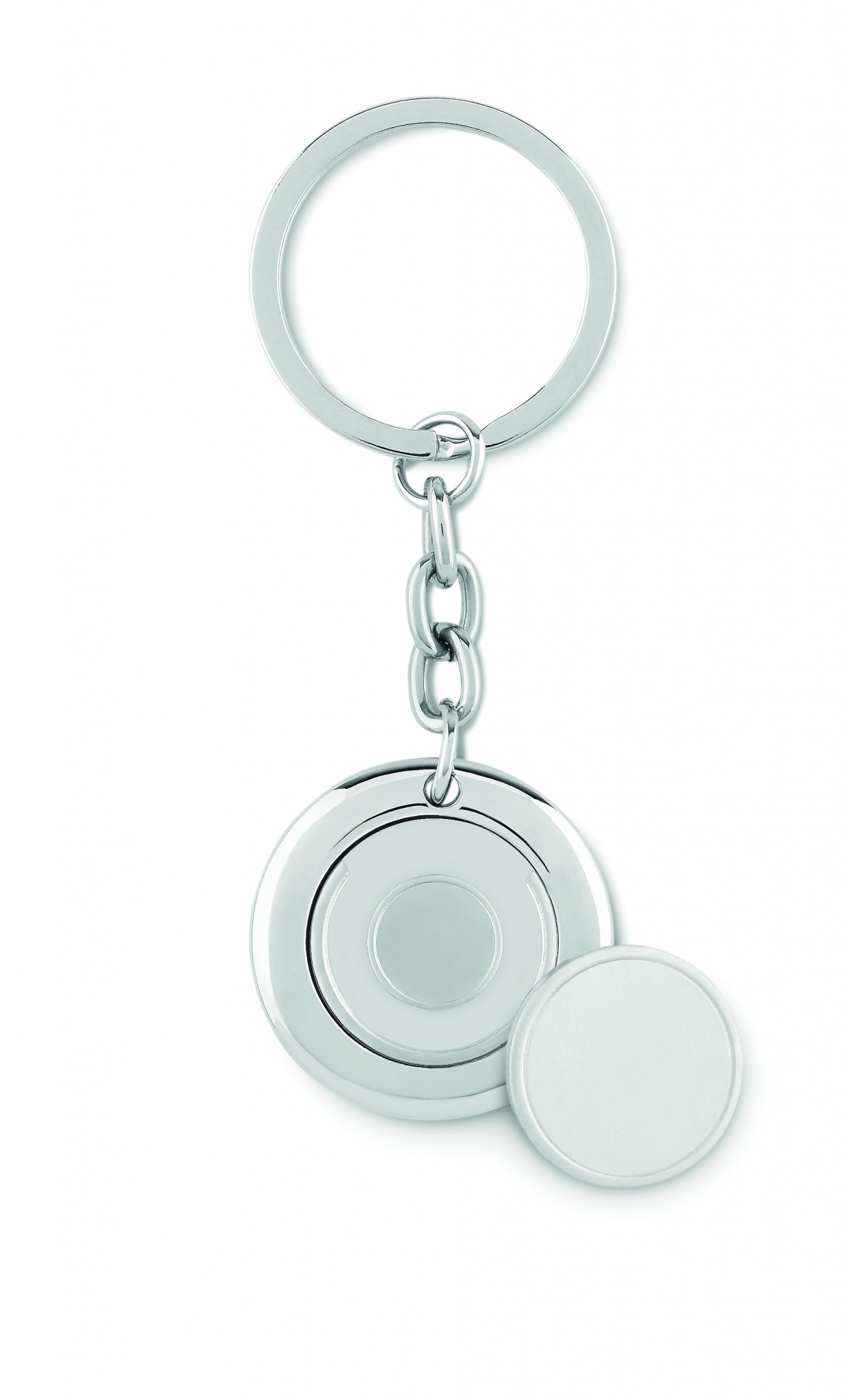 Schlüsselring mit Einkaufswagenchip (Magnethalterung). Metall.
