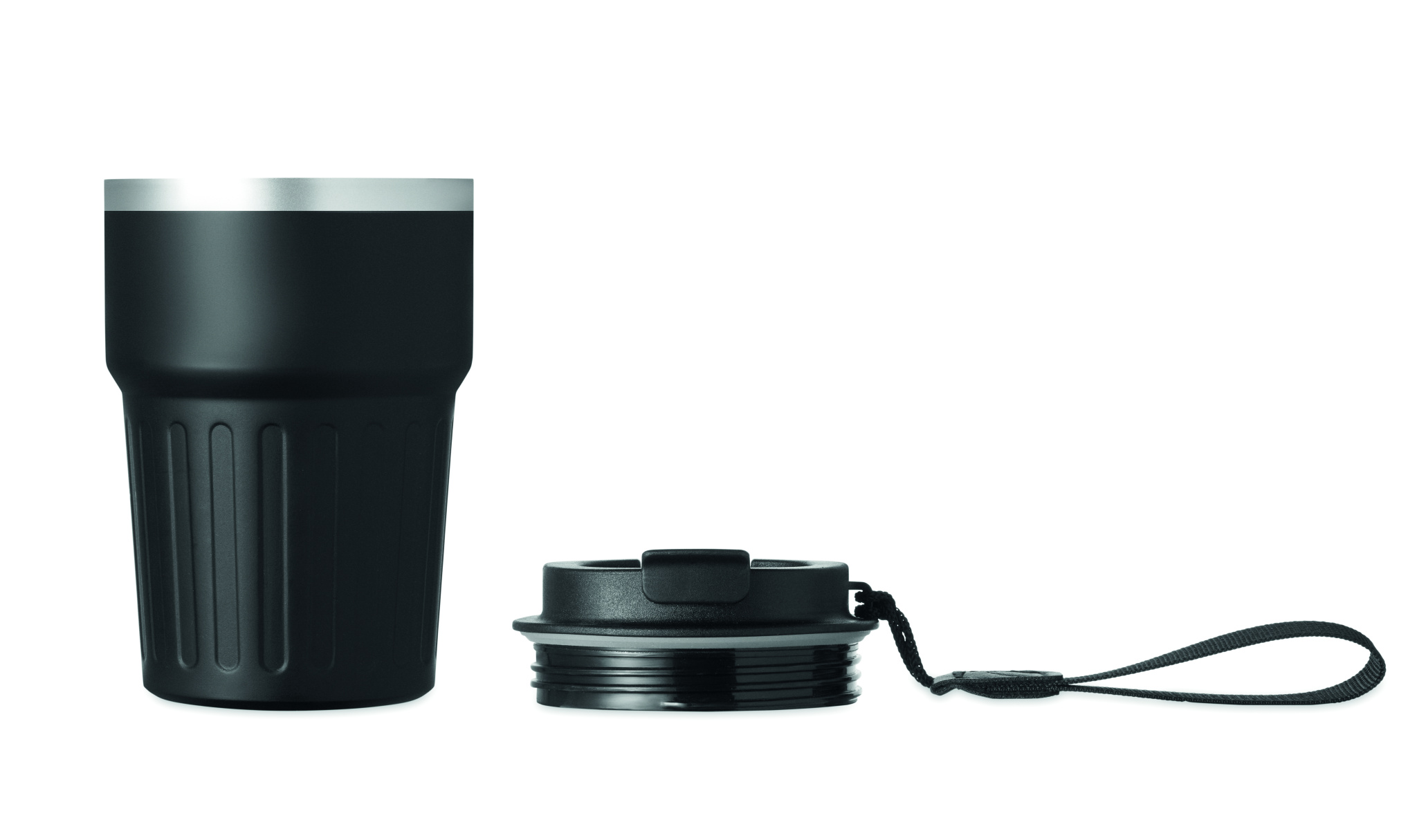 A5 notebook, recycled aluminium ballpen, and 350 ml double wall recycled stainless steel tumbler with PP sip lid and strap in gift box.