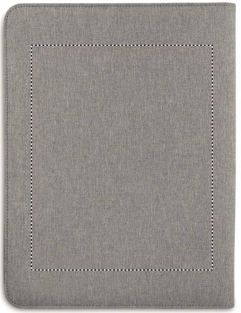 A4 conference folder in two-toned polyester. Zipped. 20 lined pages notepad. 3 compartments. Pen holder.