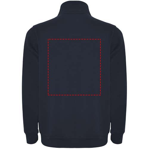 Sweatshirt with matching half zip and polo neck. Matching inner collar. Reinforced covered seams on inner collar. 1x1 ribbed cuffs and waist. The model is 185 cm and is wearing size M.