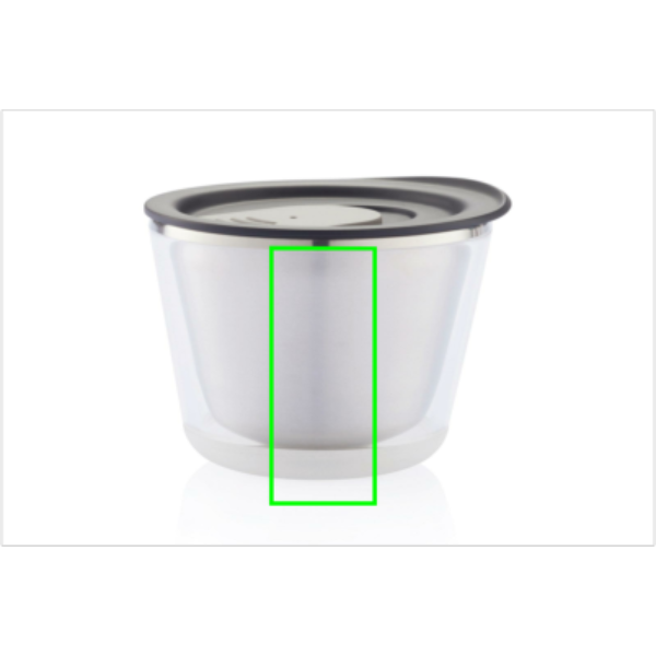 Closable, insulated and compact enough to fit under the coffee machine (227 ml). It is also very hygienic due to the lining of the mug being made out of stainless steel and not plastic. Designed so that the mug is easy to take apart for recycling. Registered design®