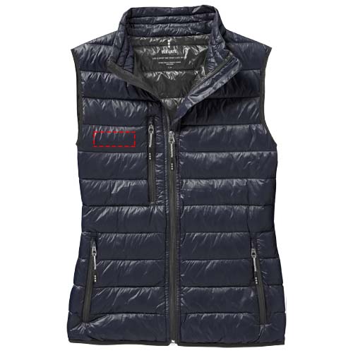 The Fairview women's lightweight down bodywarmer – perfect functionality to elevate your outdoor attire. This bodywarmer features elasticated binding on the bottom, offering a comfortable and slightly tight fit that adds protection against chilly winds. The outer shell fabric is made of nylon dull cire 20D woven with a water-repellent finish, ensuring exceptional durability and good protection against the elements. The lightweight material allows for easy movement and effortless wear throughout the day. The downproof pressed fabric prevents the down and feathers from escaping, ensuring long-lasting warmth and an extra level of durability. The down insulation is RDS certified (Responsible Down Standard), consisting of down and feathers, providing lightweight warmth without compromising ethical standards. A reliable companion for any outdoor adventure. This bodywarmer is designed with a fitted shape for a feminine look.