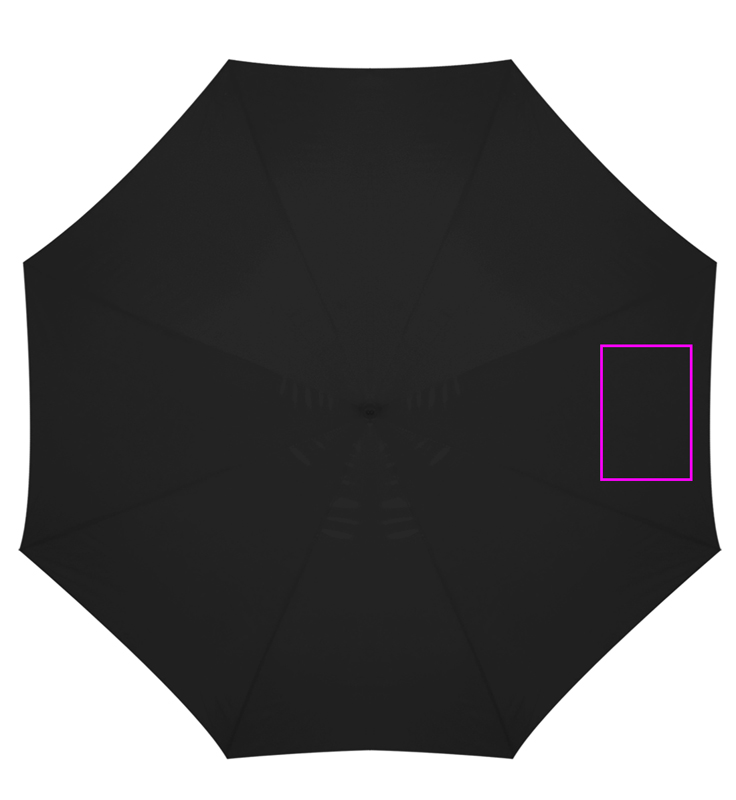 Small and handy, so you can take it everywhere. A handy collapsible umbrella with a metal telescopic bar and 170T Polyester canopy, a black plastic grip and a hand loop. We will place your logo on one panel of the umbrella.