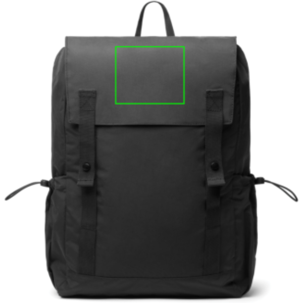 The KENTO Everyday Backpack is designed to carry everything you need throughout the day- it offers plenty of room for daily essentials and is ideal for day trips and travel, folding compactly when needed. Crafted from RCS-certified recycled nylon with a PU backing and finished with an RCS-certified recycled polyester 300T lining, it contains 43% certified recycled material — offering a responsible and durable solution.The design features a front flap secured with two webbing straps and magnetic button closures. Under the flap, a front zipper pocket and a spacious main compartment with dual-side drawstring closure provide easy access and secure storage. Inside, there is room for a 15.6” laptop sleeve to keep your device protected and organised.A top webbing handle and adjustable back shoulder straps ensure comfortable carrying, while side bottle holders with drawstring closure add extra practicality.