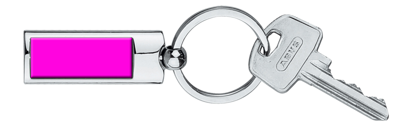 Chic keychain made of matte and shiny metal. We engrave your logo on the matte center piece. Doming possible on request.