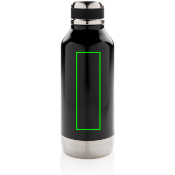 Leak proof vacuum bottle with logo plate, black