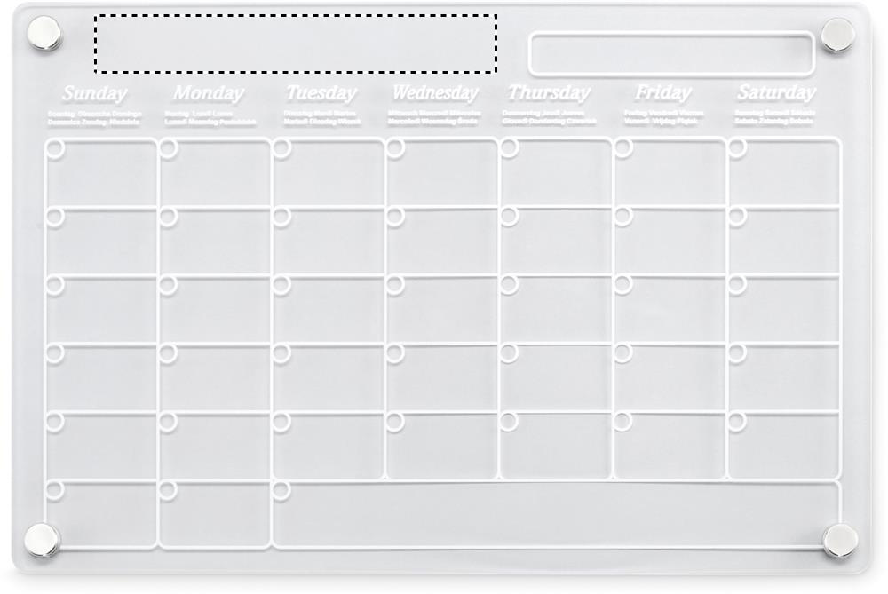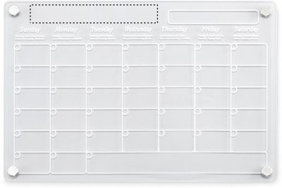 Magnetic acrylic monthly planner in A4 size with 3 erasable magnetic markers (black, red and white). Includes screws for mounting.