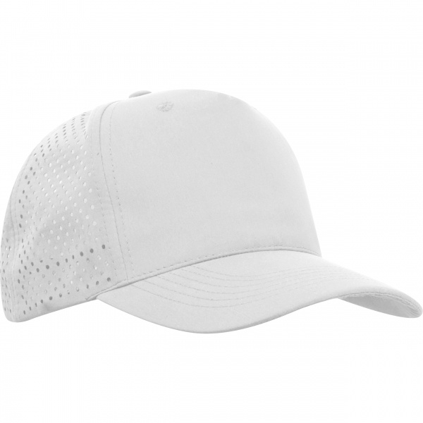5-panel baseball cap made of polyester with a hook-and-loop fastener at the back and an inner sweatband. The perforated design ensures a particularly comfortable and breathable fit. Your logo is printed in the center of the front panel. Embroidery available upon request.