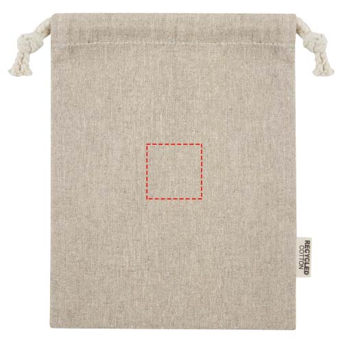 Gift bag made of GRS certified recycled cotton with cotton drawstring closure. Ideal for gifting or storing items. Size: 15 x 20 cm. There may be minor variations in the colour of the actual product due to the nature of the production process.