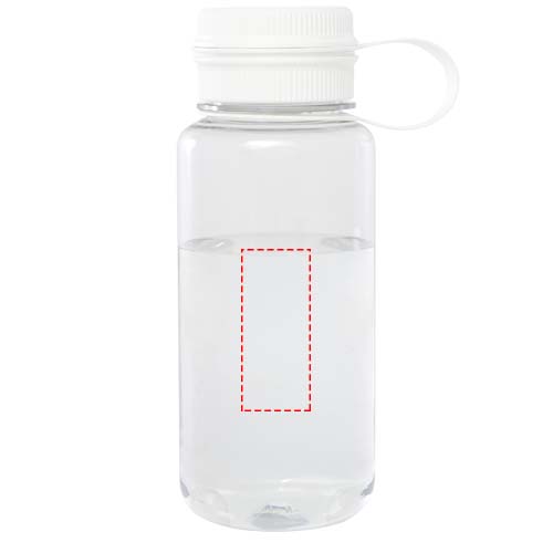 Single-walled sport bottle made from RCS certified RPET, featuring a screw-on top and leak-proof lid with a convenient handle for carrying that is integrated with the cap. Dual opening construction for easy cleaning and filling. In compliance with the EFSA-approved (European Food Safe Authority) PET recycling process. Volume capacity: 900 ml.