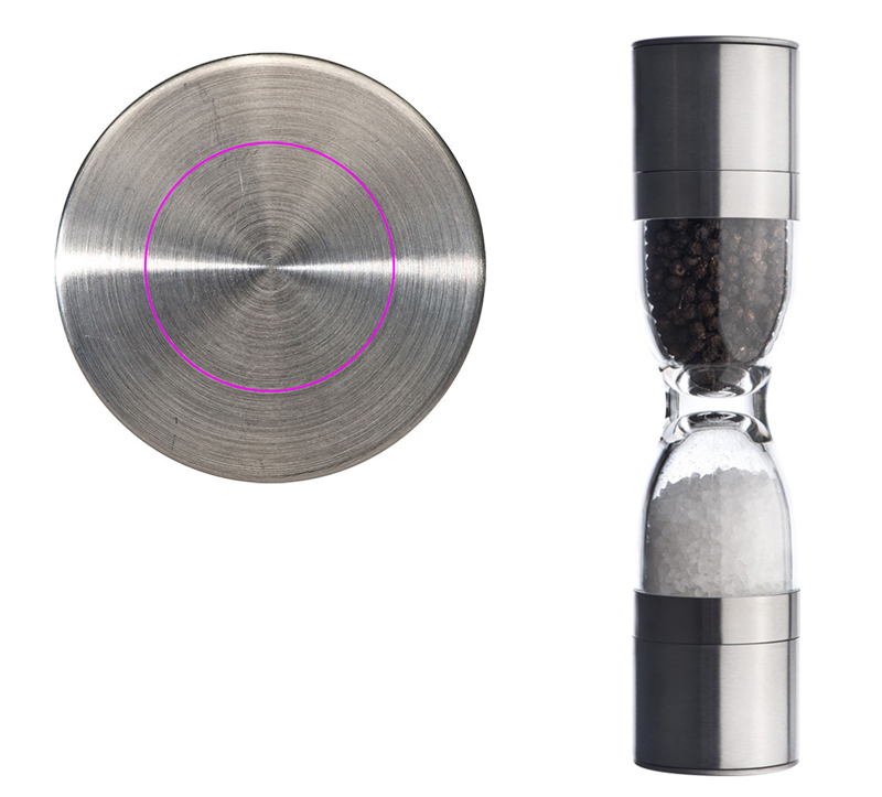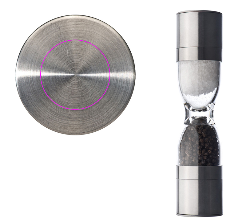 Spice it up! Spice up your customer relationship with this nice 2-in-1 salt and pepper mill. The stainless steel and plastic made mill features two adjsutable ceramic grinders. Rough salt and fresh pepper are easily grinded. We will engrave your logo centered on one stainless steel lid on one side. Single-packed in box.