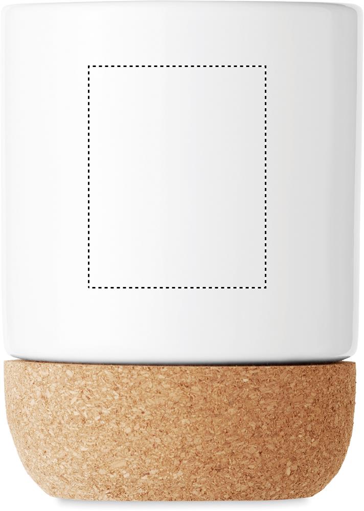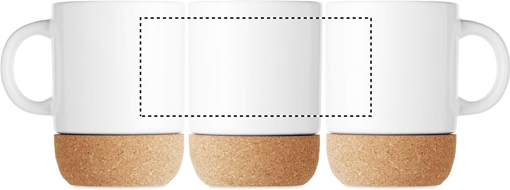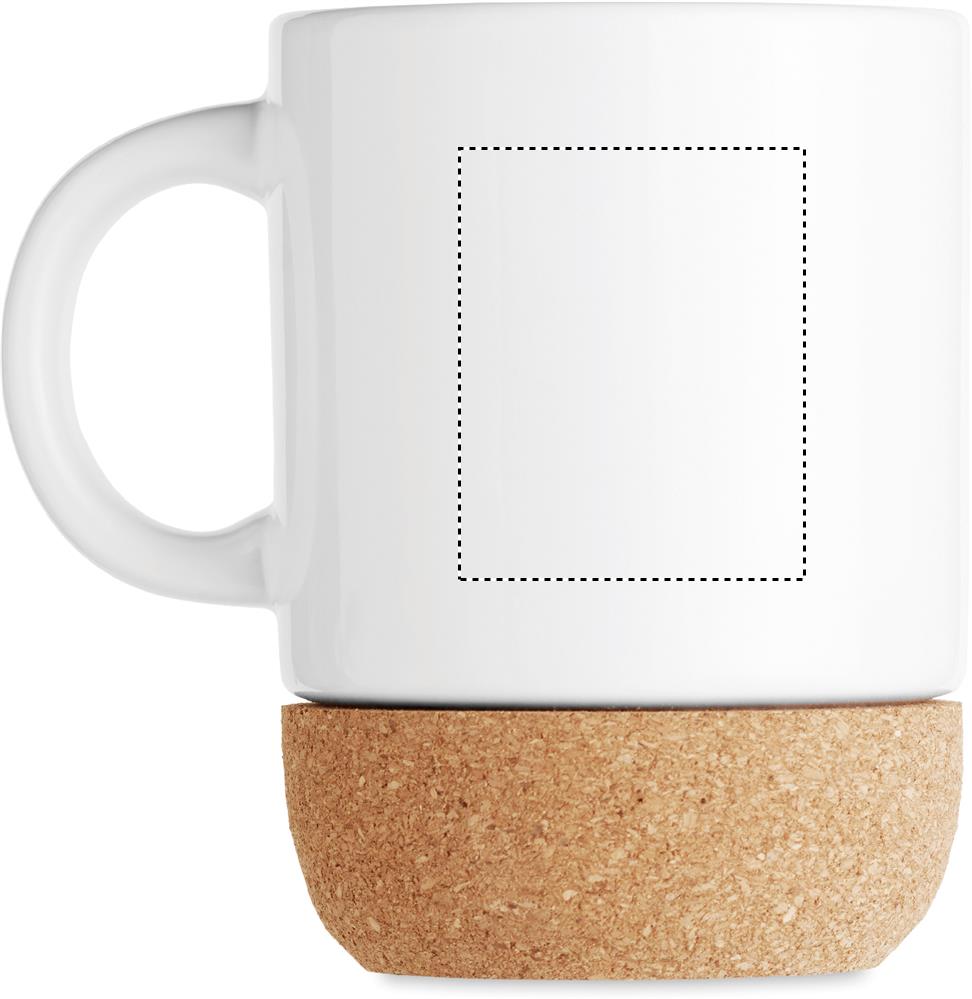 Ceramic mug with special coating for sublimation print and cork base detail. Individual packing in white carton box. Capacity: 300 ml Cork is 100% natural material. Due to its structural nature and surface porosity the final print result per item may have deviations.