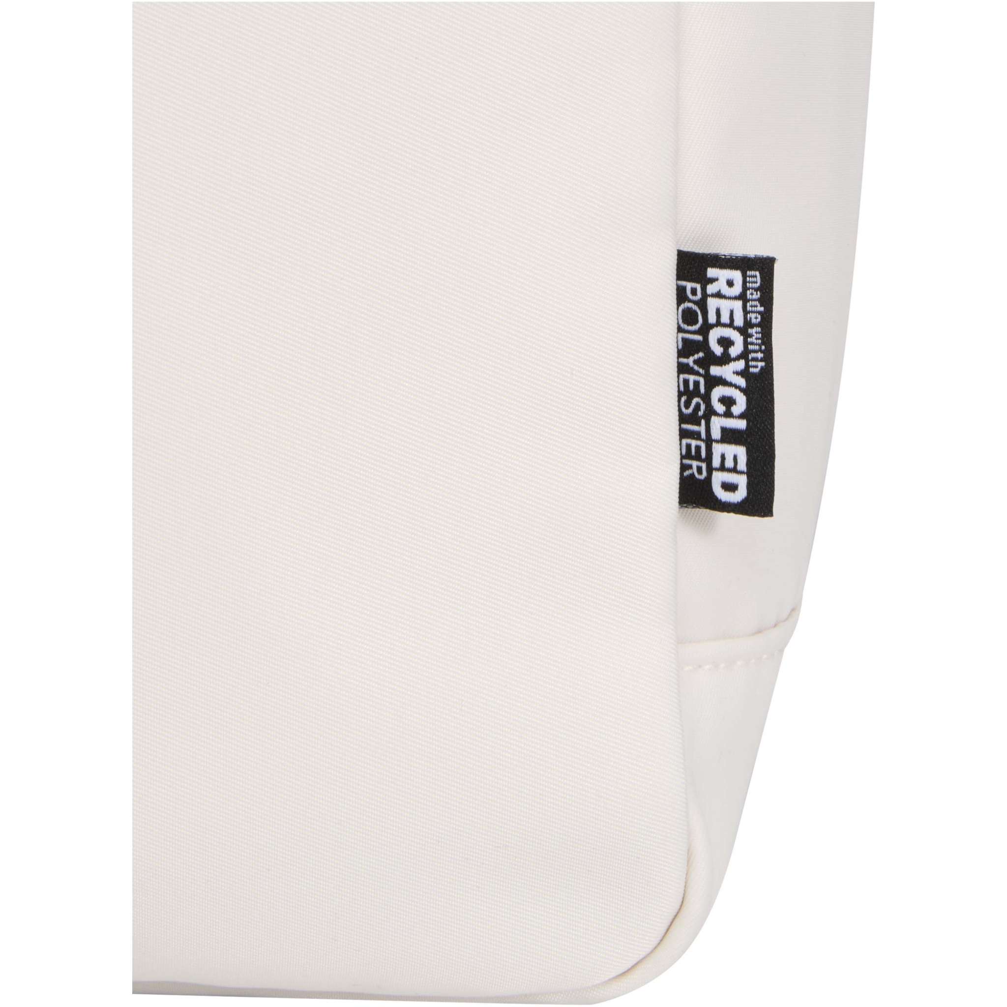 The Trip Aware™ recycled travel laptop backpack is a compact, lightweight backpack designed for streamlined travel and everyday use. Made from durable 290D twill polyester with a soft knitted backing and lined with RPET 210D/PU, it combines functionality with a clean, practical design. It features two side pockets for water bottles, dual carry handles, and comfortable shoulder straps. The front zip pocket includes organised storage for a passport, pens, and a ribbon for keys, while the main compartment fits a notebook or tablet. A separate 14” laptop compartment and a trolley sleeve on the back make it especially suitable for travel. Each bag also comes with an Aware™ tracer. This innovative feature allows users to trace the origins and journey of their item through a QR code, enhancing transparency in the supply chain and fostering a stronger connection between the product and its production process. Volume capacity: 9 litres.