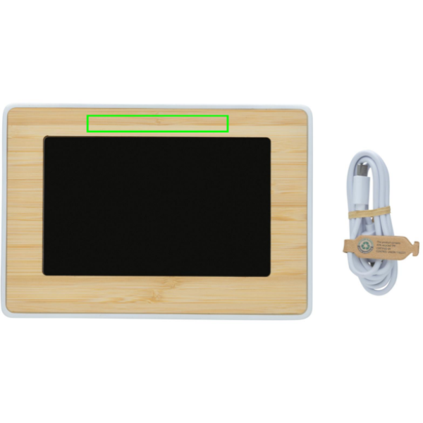 Large LED screen clock made with RCS (Recycled Claim Standard) certified recycled ABS and FSC® 100% bamboo. Total recycled content: 76 % based on total item weight. RCS certification ensures a completely certified supply chain of the recycled materials. With high quality LED screen. Functions: clock, alarm, snooze, temperature, 12/24 hour option. Including 100 cm type C charging cable made from RCS certified recycled TPE. Packed in FSC® mix kraft box.