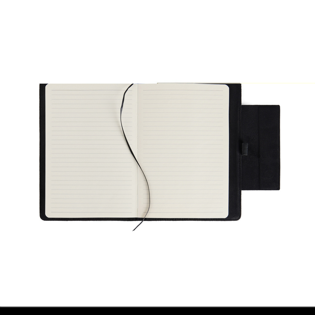 A stylish A5 notebook consisting of 160 lined pages (80 sheets). It is the perfect accessory to bring to meetings, keeping your notes organised in style. Marlow notebook combines timeless design with recycled faux leather, PU details and recycled paper. The notebook is equipped with a practical and stylish magnetic closure. Certified by GRS (Global Recycled Standard), GRS certification guarantees that the entire supply chain of the recycled materials is certified. The total recycled content is based on the overall product weight. This product contains 50% GRS certified recycled paper and 6% GRS certified recycled polyester.