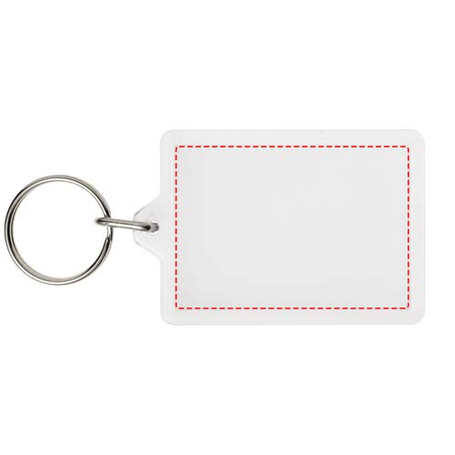 Clear rectangular C1 keychain with metal split keyring. The metal looped ring offers a flat profile which is ideal for mailings. Print insert dimensions: 5,0 cm x 3,5 cm.