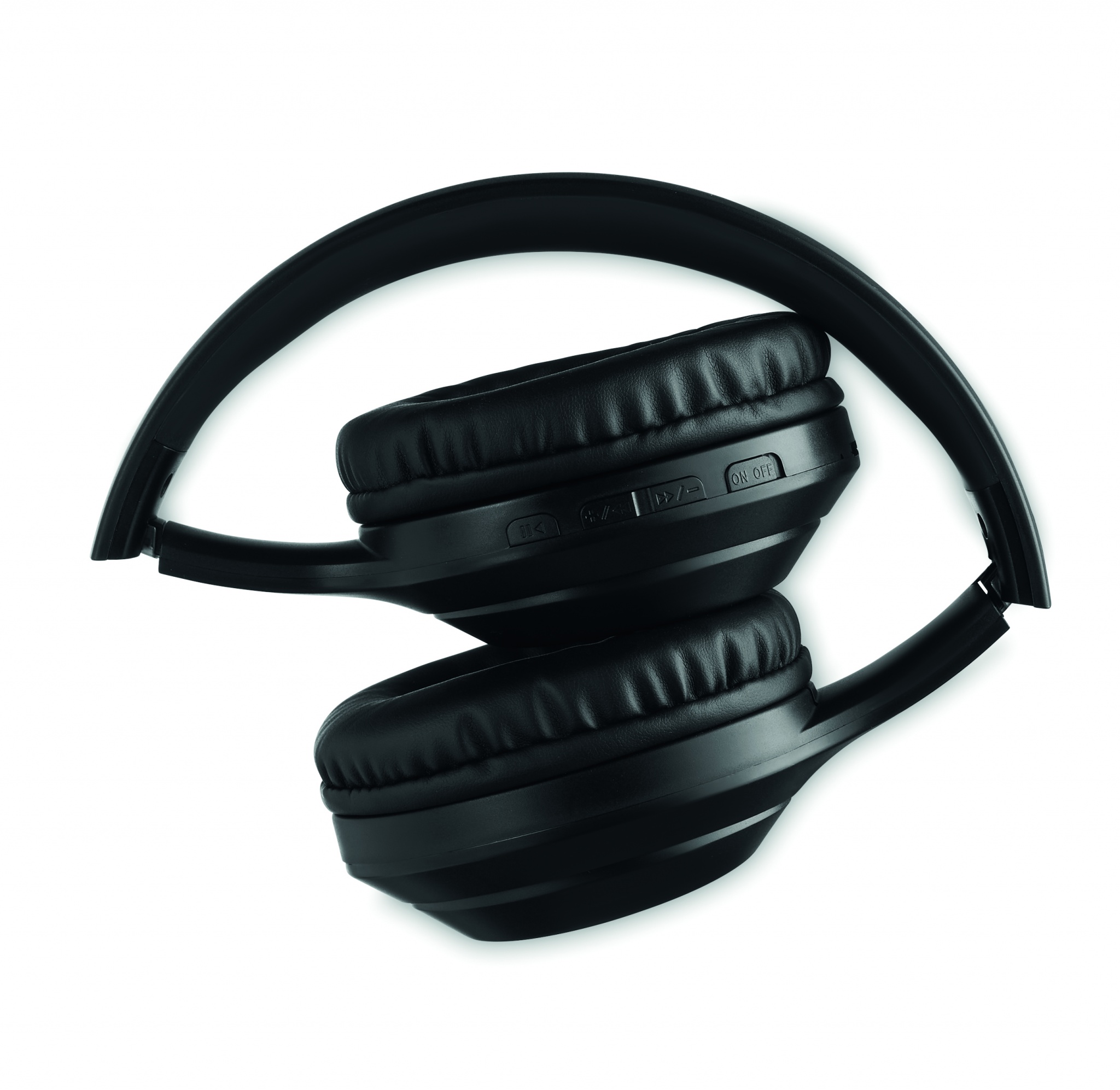 5.0 wireless foldable headphone in ABS. All presented in 140 gr/m2 cotton drawstring bag. Rechargeable Li-Pol battery 200 mAh. Hands free function and microphone built in. Playing time approx. 4 hours. Includes micro USB charging cable. Operating range: 10 m.