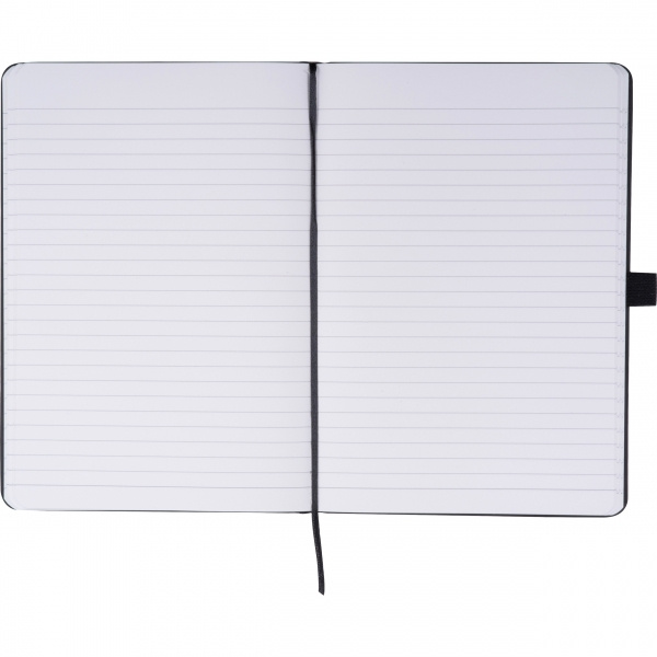 A5 märkmik PU-kaane, järjehoidja, kummipaela, pliiatsiaasa ja 120 kivipaberist lehega. See spetsiaalne paber on valmistatud kaltsiumkarbonaadist ning on õli- ja veekindel, antistaatiline, mitteteraline  ja mis kõige tähtsam - rebenemiskindel. Teie logo on trükitakse kaane välisküljele.