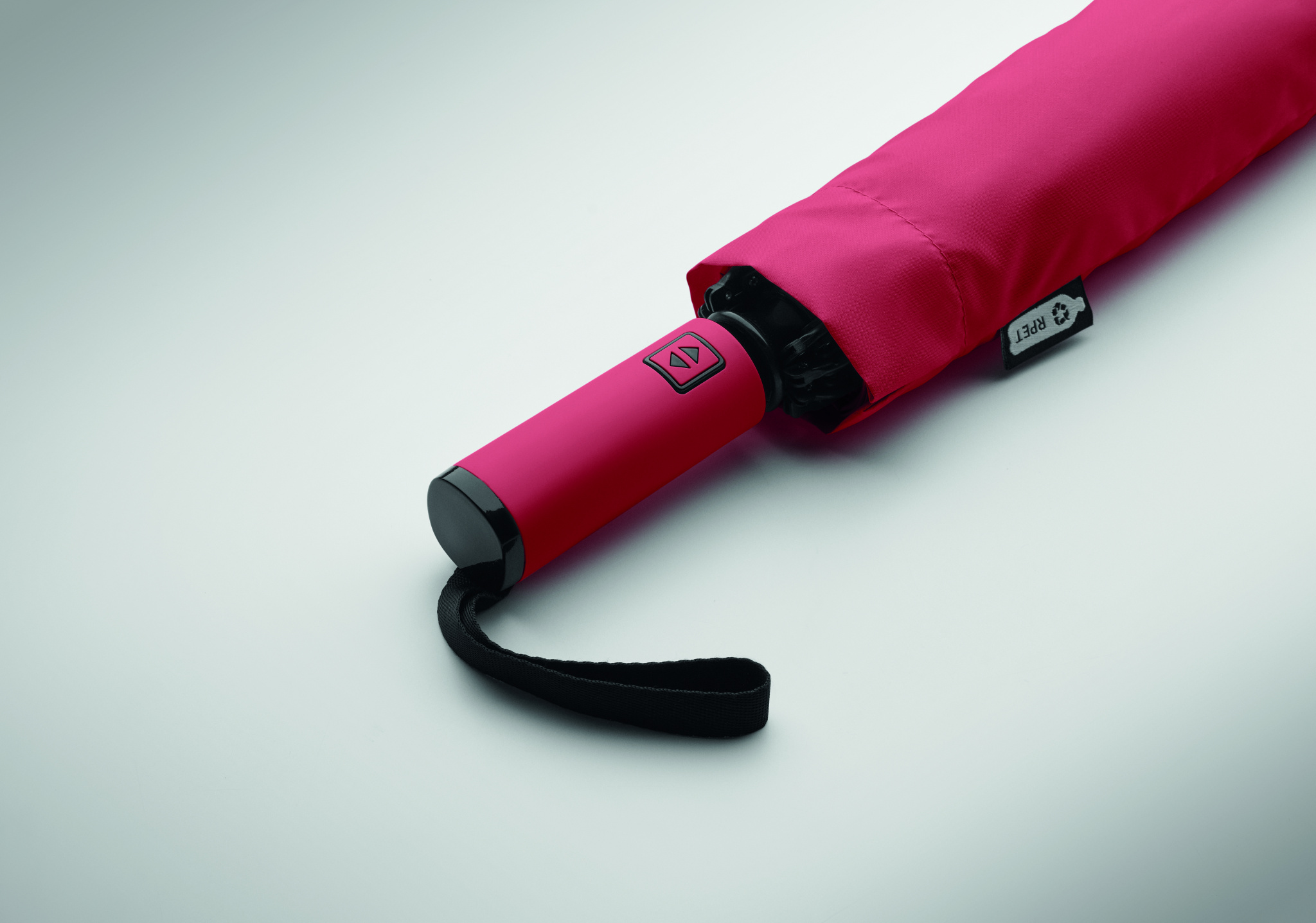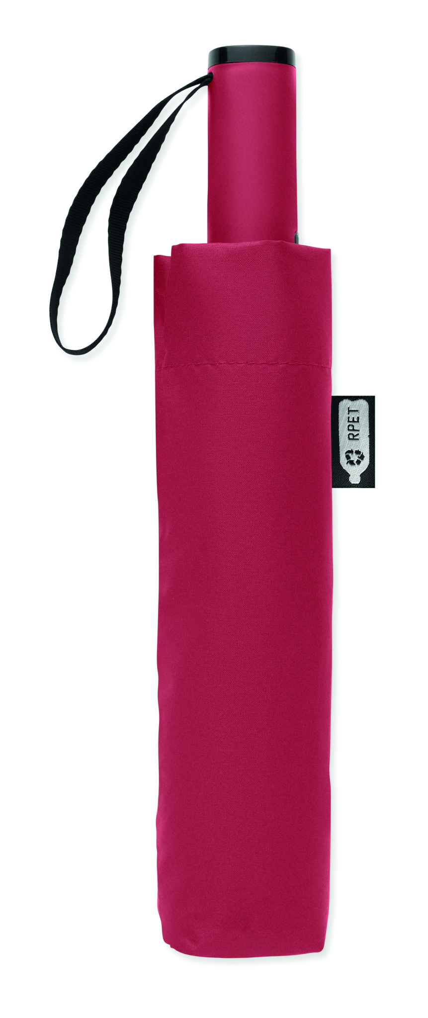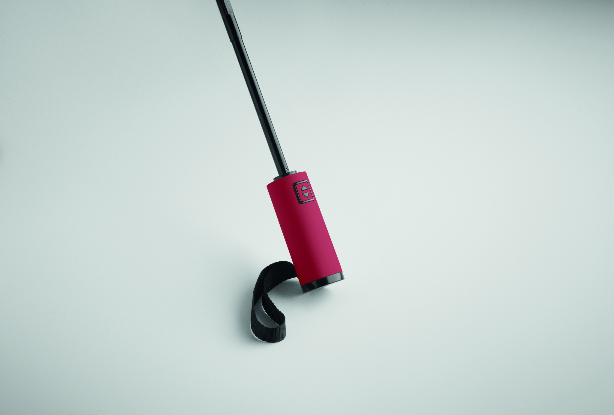 Punast värvi 23-tolline kolmekordne, kahesuunaline tuulekindel vihmavari, mis on valmistatud 190T RPET pongee materjalist. Samas toonis vutlar. Automaatselt avanev ja sulguv, mustaks värvitud raam, klaaskiust ribid ja kummist viimistlusega ABS-käepide.