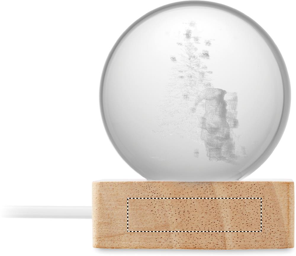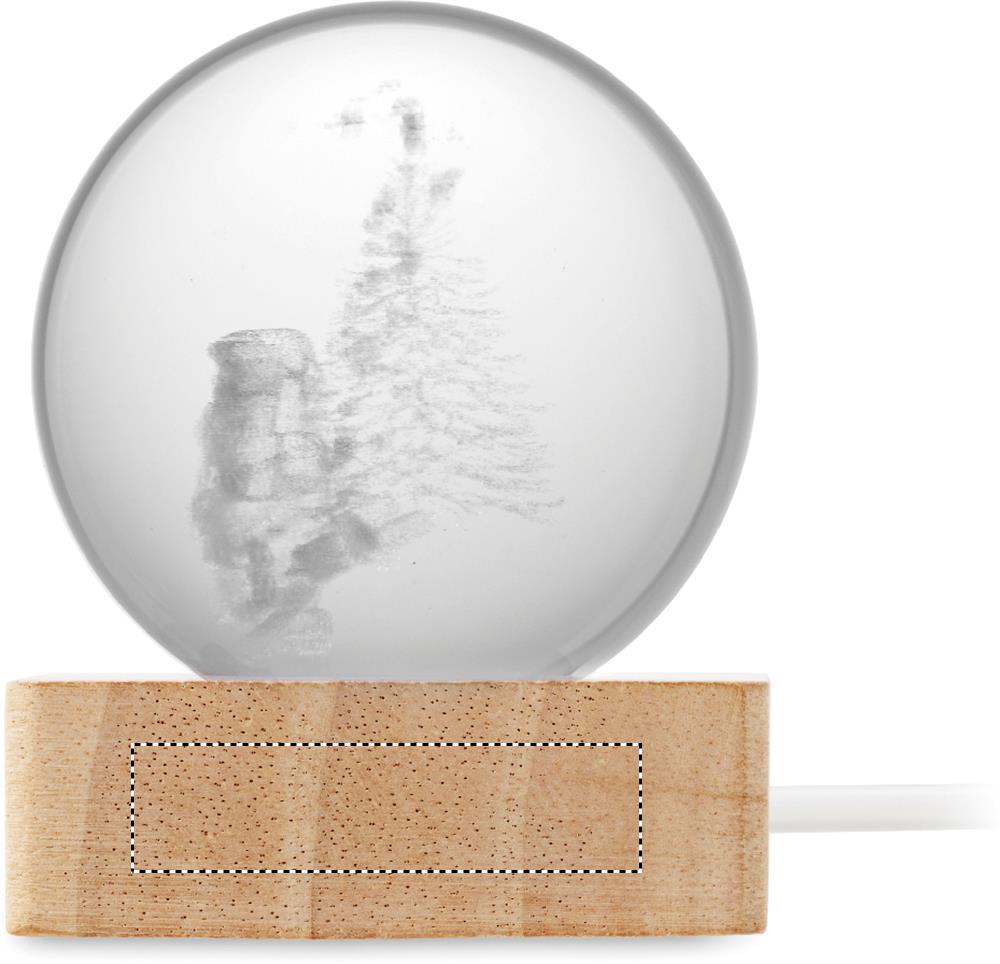 Kummist puidust alusel LED-valgusega (100 luumenit) jõulukuuli kristallist ehe. Kaasas USB laadimiskaabel (90 cm).