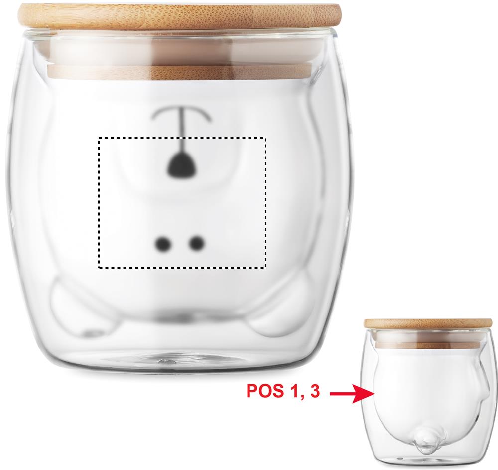 Kaheseinaline boorsilikaatklaasist kruus karu näokujunduse ja bambusest kaanega. Mahutavus: 260 ml. Bambus on looduslik toode, ühe eseme värvis ja suuruses võib esineda väikesi erinevusi, mis võivad mõjutada lõppviimistlust.