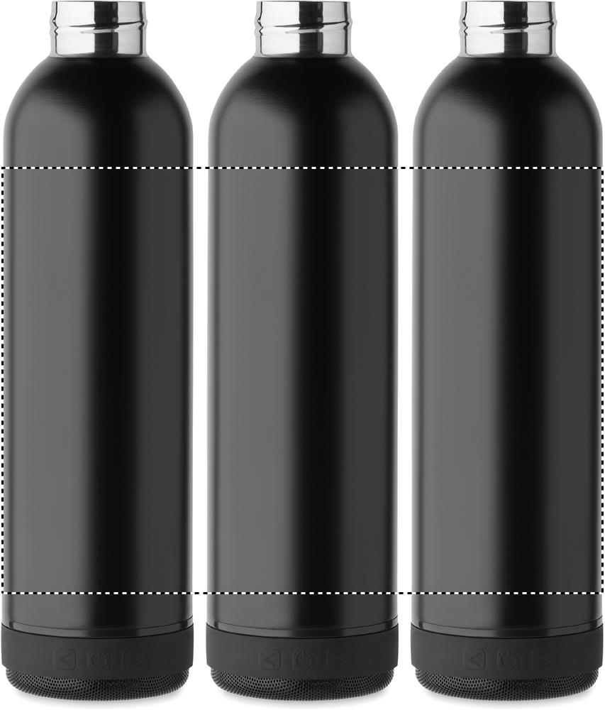 Taaskasutatud roostevabast terasest (90% taaskasutatud roostevabast terasest ja 10% roostevabast terasest) topeltseinaga vaakumisolatsioonipudel ja silikoonist kandesang koos eemaldatava 3W juhtmevaba kõlariga. Mahutavus: 500 ml. 500 mAh aku. Eemaldage puhastamiseks kõlar. Lekkevaba.