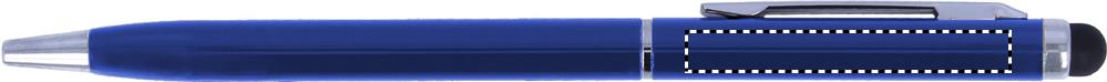 Alumiiniumist keeratav pastapliiats pliiatsi ja läikiva kroomitud klambriga. Sinine tint.