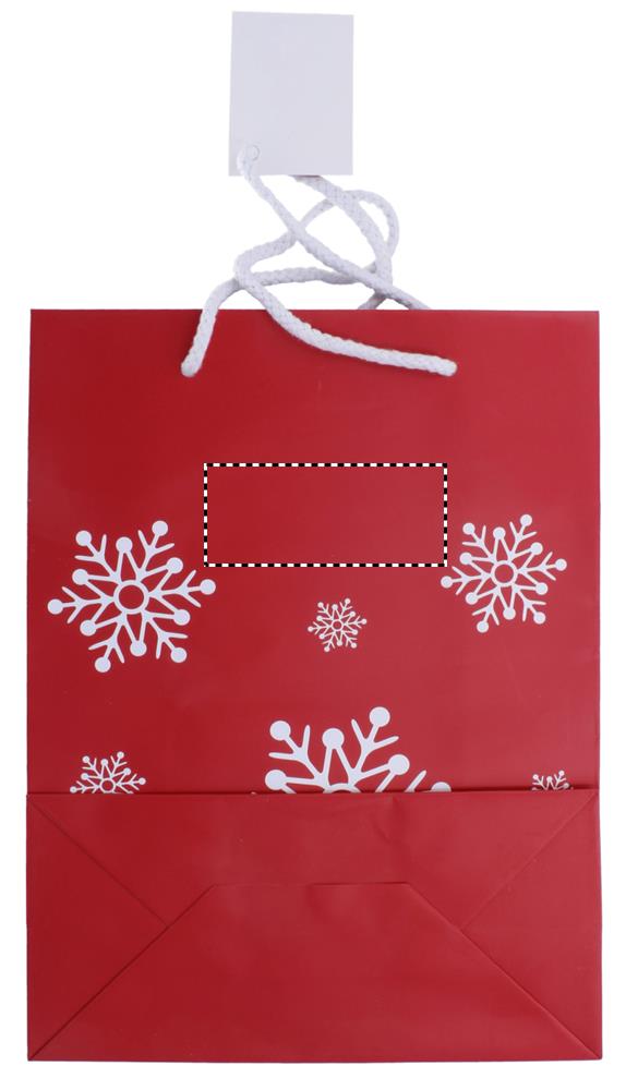 Elegantne lumehelveste mustriga kinkepaberkott. Kaasas kingitussilt. Keskmise suurusega.