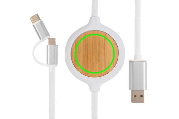 Kolm-ühes kaabel 5W bambusest juhtmevaba laadijaga, valge