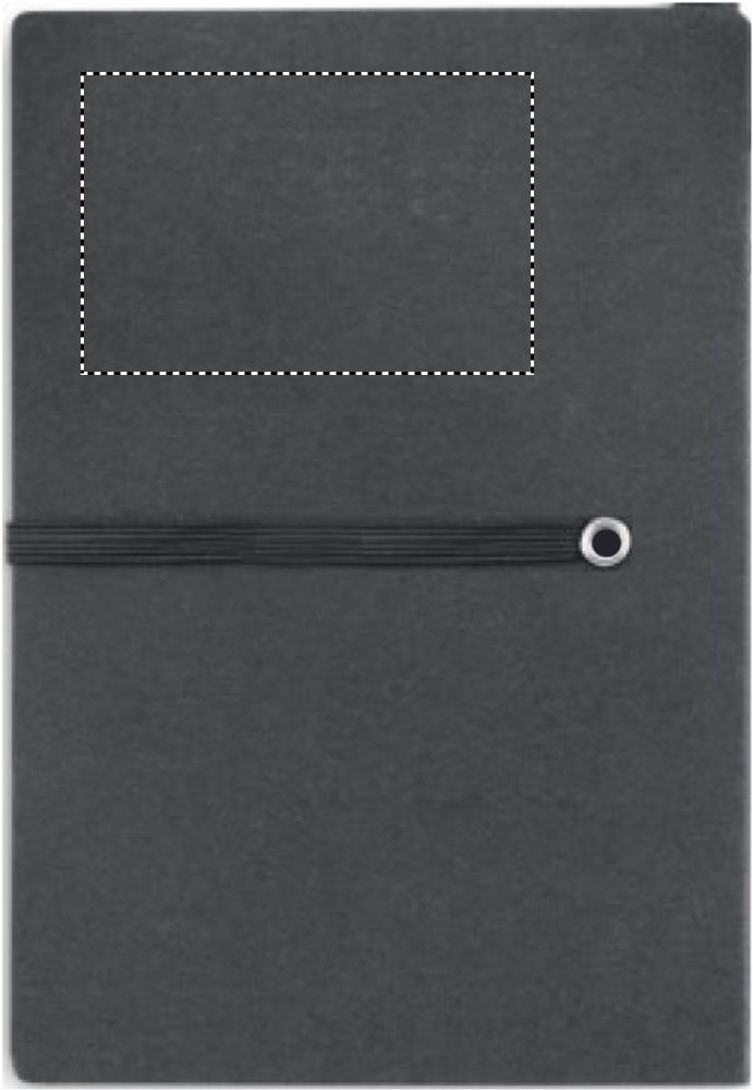 Taaskasutatud kartongist märkmik kleepuva märkmeploki ja pliiatsiga. Pehme taaskasutatud pappkaanega märkmik. Casebound. 140 joonelist lehte (70 lehte). Suured ja keskmised märkmeplokid ja 4 erinevat värvi lehemarkerit. Sobiv nupuga pastakas taaskasutatud karbis ja ABS-detailidega. Must tint. Sobiv elastne sulgemisrihm.