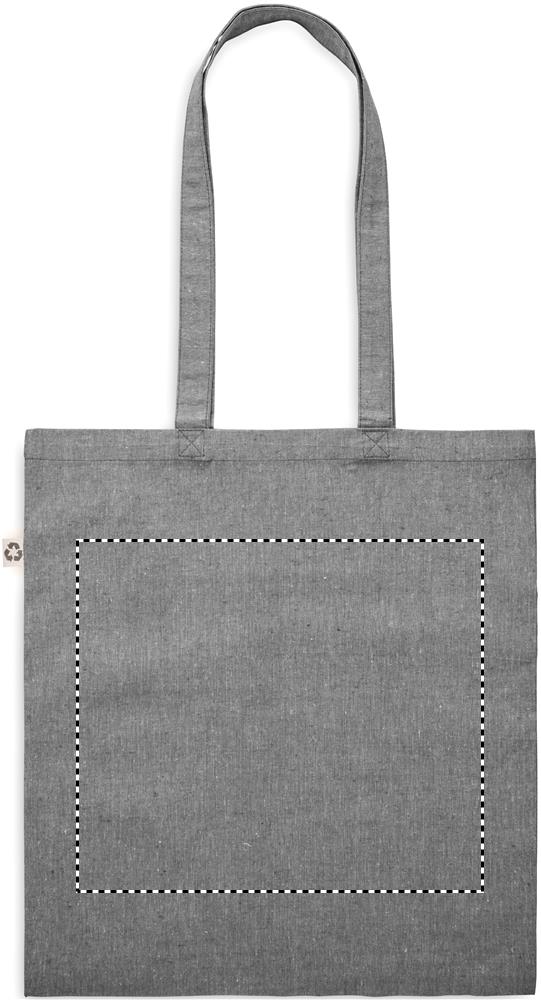 Taaskasutatud puuvillast ostukott (80% taaskasutatud puuvill, 20% puuvill) pikkade sangadega. 140 gr/m².