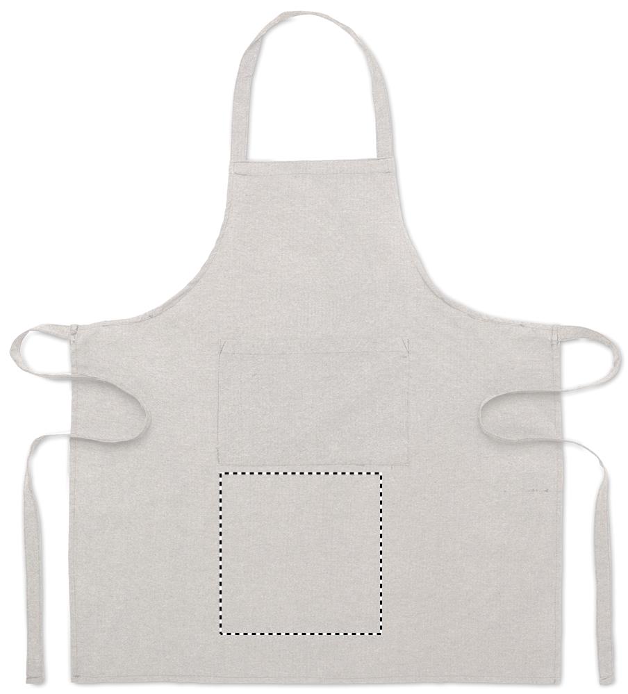 Reguleeritav köögipõll 1 esitaskuga 220 gr/m² taaskasutatud puuvillast. 80% taaskasutatud puuvill, 20% tavaline puuvill.