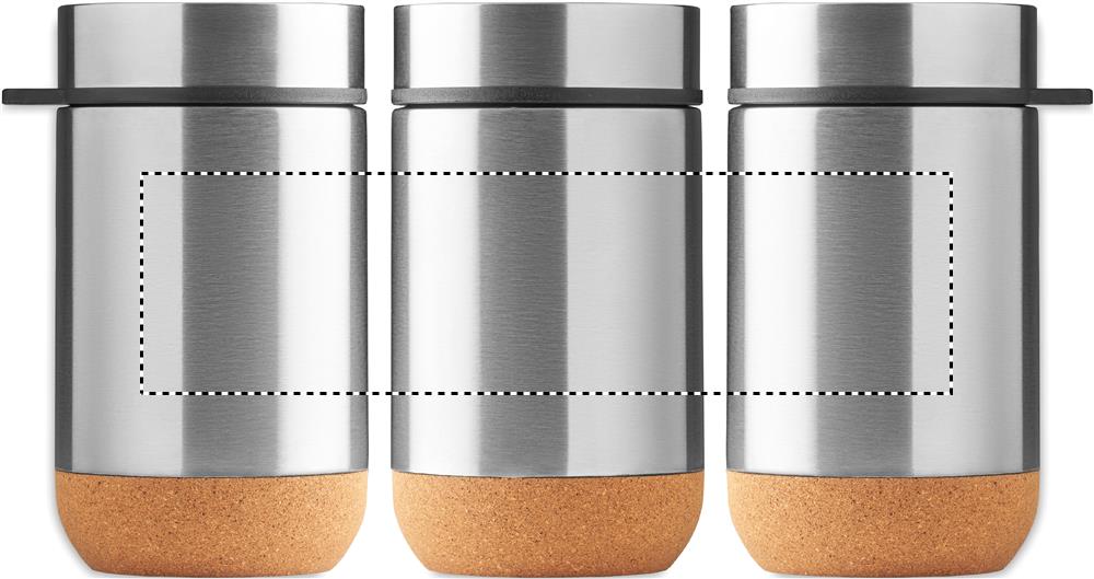Kahekordse seinaga roostevabast terasest isolatsiooniga purk keeratava korgi ja korgist põhjaga. Kaasas lusikas. Mahutavus: 400 ml. Kork on 100% looduslik materjal. Selle struktuurse olemuse ja pinna poorsuse tõttu võib lõpptulemus eseme kohta esineda kõrvalekaldeid.