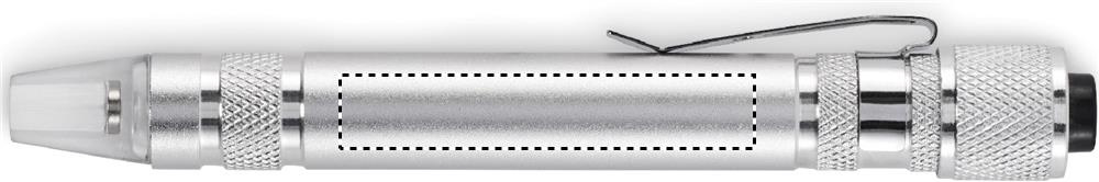 Pliiatsi kujuga taaskasutatud alumiiniumist multitööriist taskulambiga. Kaasas 3 lameotsaga ja 3 Phillipsi kruvikeeraja pead. Kaasas 4 nööppatareid LR41.