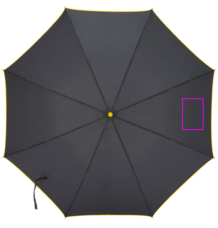 Automaatne vihmavari 190T pongee klaaskiust postid, plastikust käepide, värviline velg, käepide ja raam. Trükime teie logo ühele segmendile.