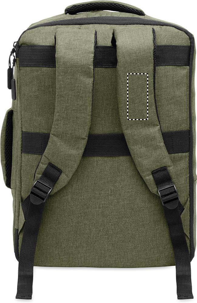 Ohut 15 tuuman kannettava reppu 300D RPET:stä ja 210D RPET-vuorella. Sisältää kannettavan tietokoneen lokeron, 2 sisäistä liukutaskua, 2 sisäistä kynätaskua ja 2 pehmustettua kantokahvaa. Pehmeästi pehmustetut selkä- ja olkahihnat. Trolleypidike kääntöpuolella.