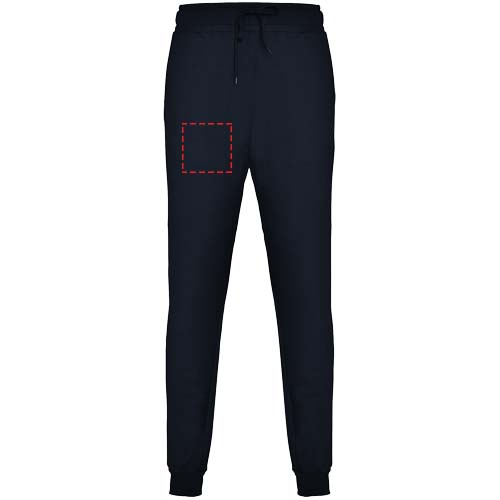 Urheiluhousut, joissa leveä säädettävä vyötärönauha, kiristysnyöri, tyköistuvat lahkeiden suut, vahvistetut saumat, uurretut sivutaskut ja tikattu kulmatasku. Irrotettava etiketti.