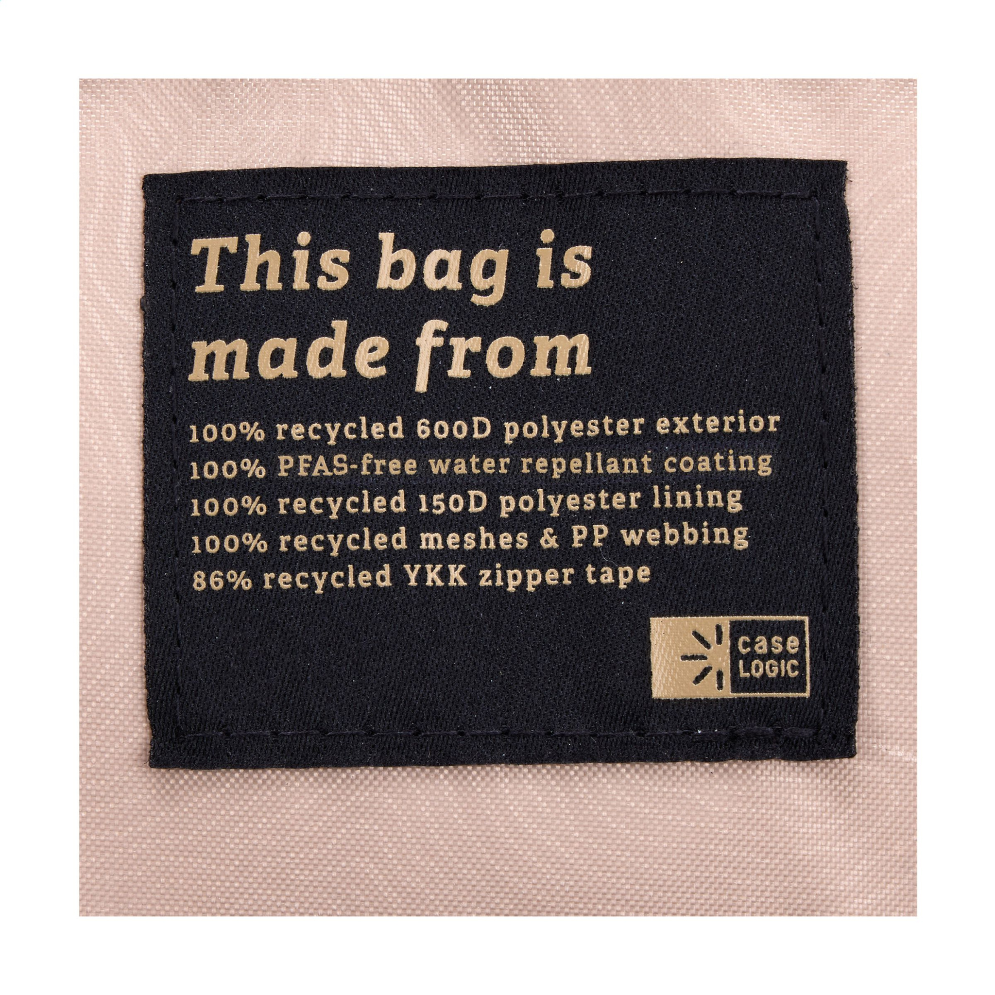 Tukeva kannettava-reppu Case Logic -brändiltä. Valmistettu 82 % kierrätetyistä materiaaleista: 100 % kierrätettyä 600D polyesteriä ulkopinta PFAS-vapaalla vettä hylkivällä pinnoitteella, kierrätetty 150D polyesterivuori ja YKK-vetoketjut vetoketjulla, joka on valmistettu 86 % kierrätysmateriaalista. Repussa on kaksi pääosastoa ja harkittuja organisointiominaisuuksia. Eri osastoissa on suojaava vaahtomuovikerros, joka suojaa optimaalisesti 16,6 tuuman kannettavaa tietokonetta ja 12,9 tuuman tablettia, useita liukutaskuja ja vetoketjullinen verkkotasku. Takapaneelin piilotettu turvatasku pitää tärkeät esineet, kuten passin tai lompakon piilossa, mutta silti helposti ulottuvilla. Hengittävä verkkomateriaali takapaneelissa, pehmustetut ja muotoillut olkaimet sekä pehmeästi pehmustettu verkkokahva lisää kantomukavuutta. Helppo kiinnittää vaunuun. Kierrätysmateriaalit takaavat pitkän käyttöiän. Kapasiteetti n. 21 litraa.