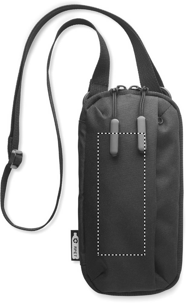 Yliolanlaukku puhelimelle 300D RPET polyesteristä, säädettävällä hihnall. Vetoketjullinen etu- ja sivutasku. sekä useita muita taskuja.