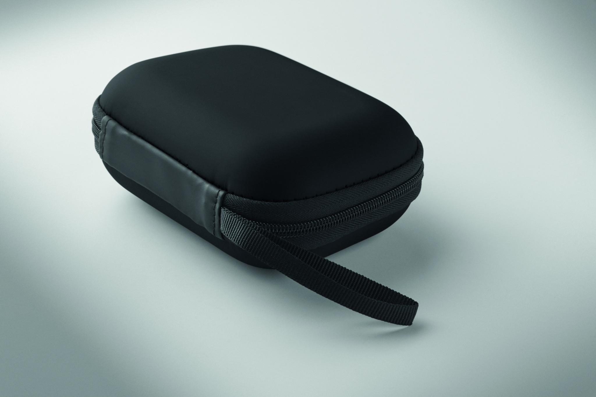Ensiapulaukku kovassa PU-kotelossa. Sisältää 2 käsinettä, 1 peiton, 1 teipin, 2 sidettä, 1 sakset, 4 vanupuikkoa, 10 laastaria ja 6 puhdistusliinaa. Ei saatavilla EU:n ulkopuolelle.