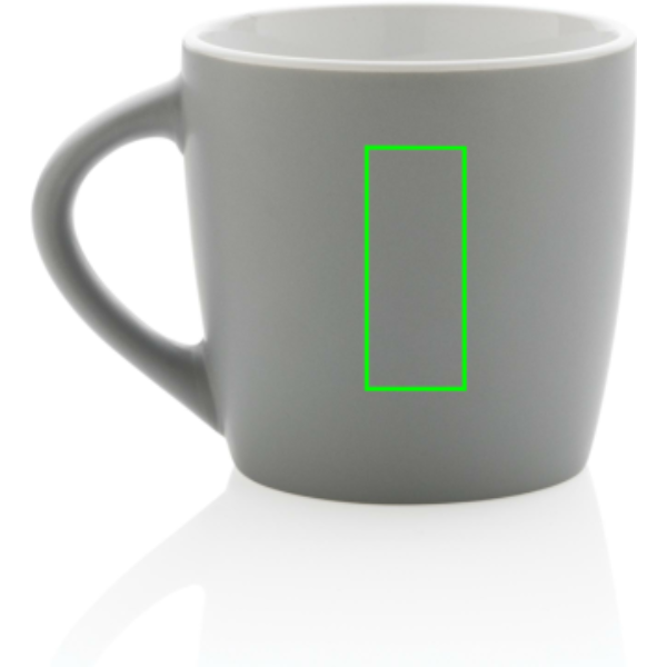 Tässä keraamisessa mukissa on freesi muotoilu matalla ulkopuolen viimeistelyllä sekä värillisellä sisäpuolella. Muki on tiskikoneturvallinen EN12875-1 (ainakin 125 pesukertaa) mukaisesti kaikkien merkkaustapojen kanssa. Pakattu kraft-lahjapakkaukseen. Tilavuus 300ml.