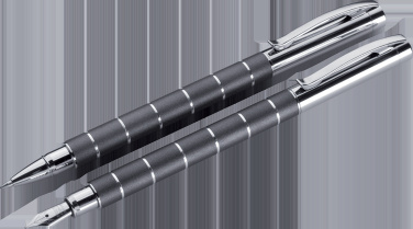 Kirjoitussetti, joka koostuu laadukkaasta läpällisestä kotelosta, kuulakärkikynästä suurella mustalla muovitäyttökappaleella ja mustekynällä. Logosi laseroidaan molempiin kirjoitusvälineisiin. Laserhinta molemmille kirjoitusvälineille.