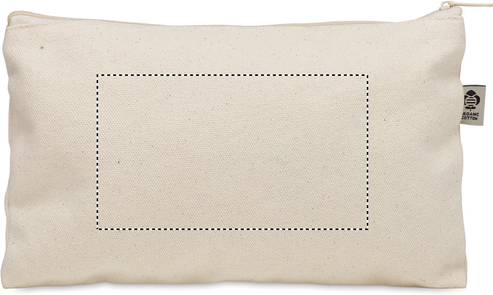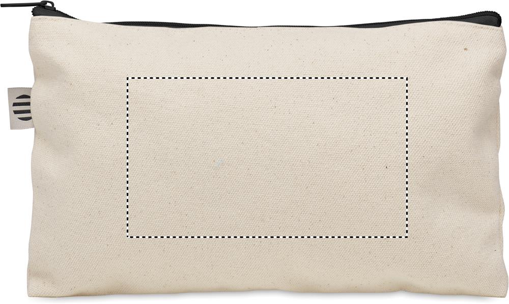 Kosmetiikkapussi luomupuuvillaa värillisellä vetoketjulla. 340 g/m².
