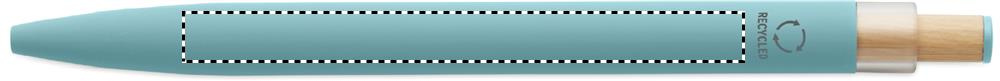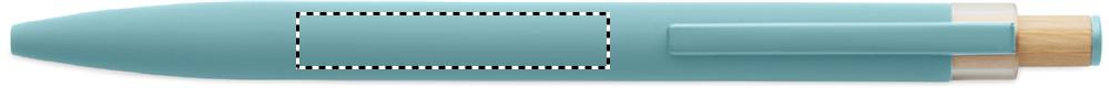 Kierrätysalumiinista valmistettu kuulakärkikynä, jossa on bambupainike, jossa on yhteensopivat värilliset yksityiskohdat ja yhteensopiva metalliklipsi. Sininen muste.