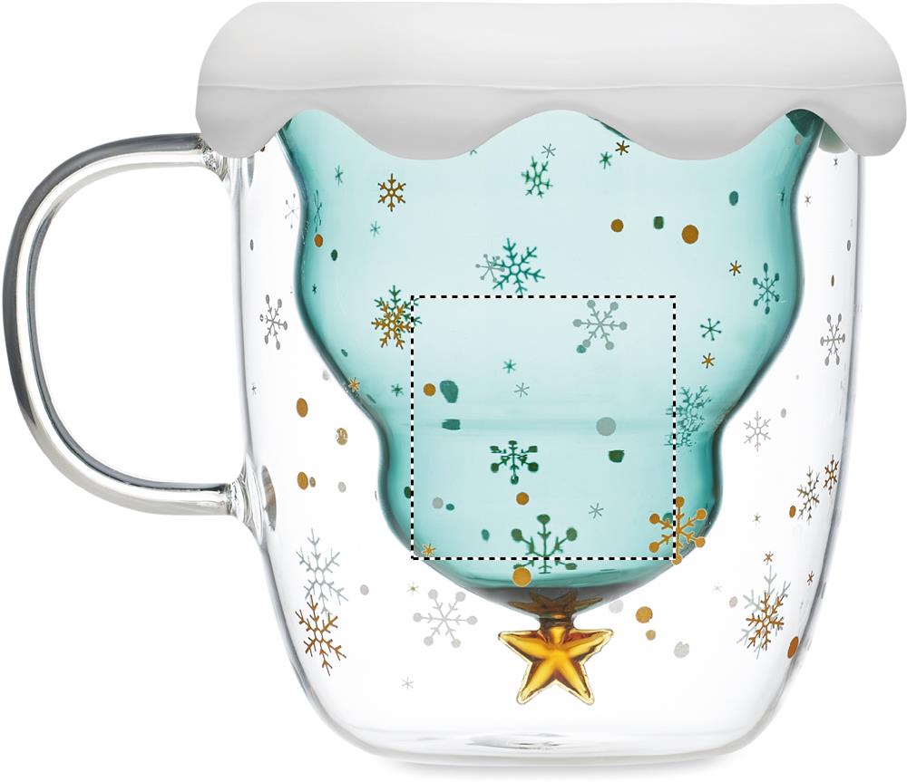 Kaksiseinäinen 250 ml borosilikaattilasinen muki, silikonisella kannella ja kausi designilla.