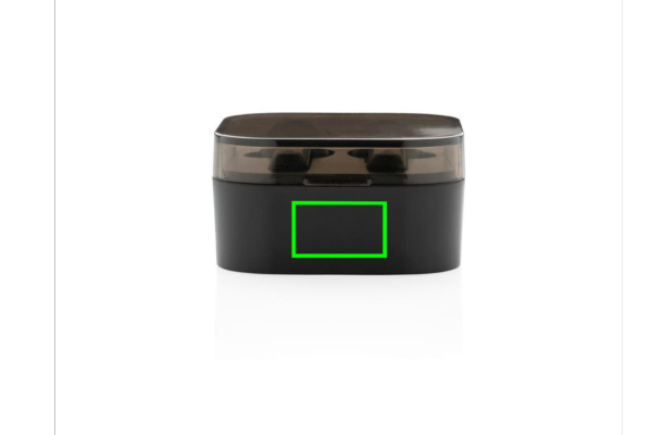 Logo trade mainostuote kuva: Mustat TWS-kuulokkeet ja langaton latauskotelo